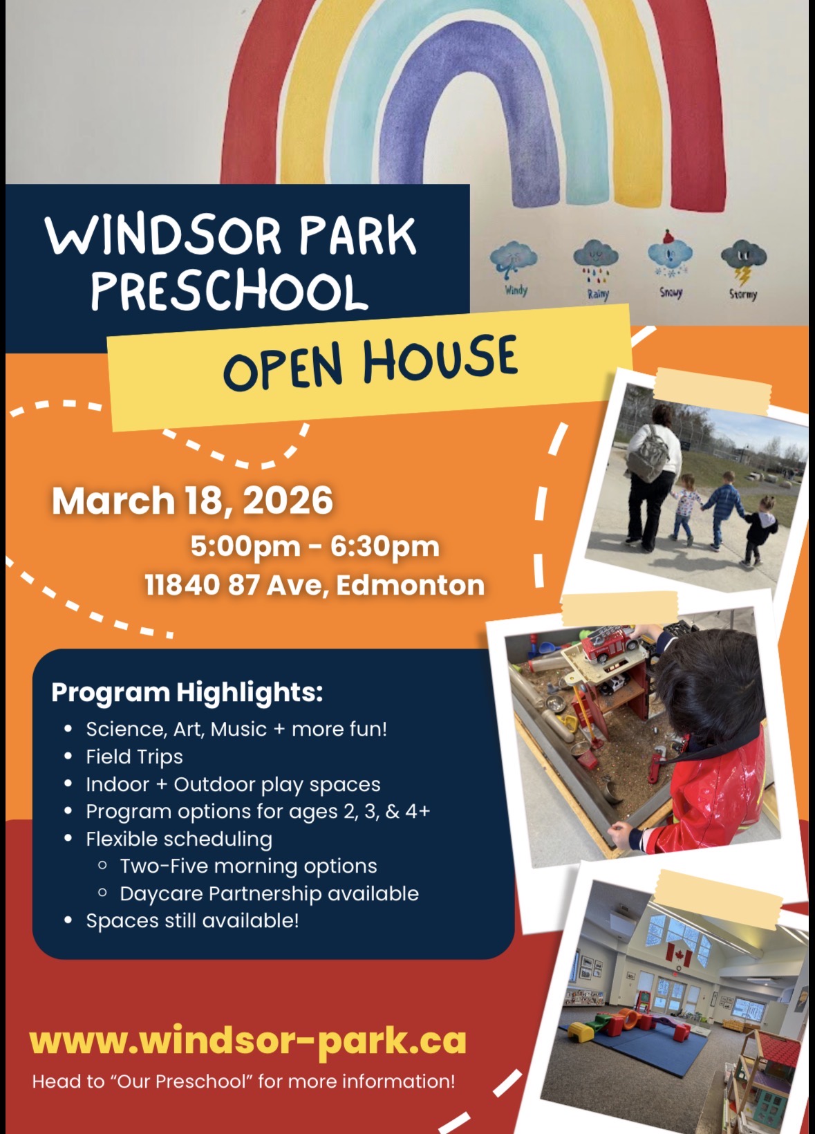Windsor Park Community Hall 76 Avenue Northwest, Edmonton, Alberta, CanadaAre you interested in preschool for your child? Come Read more...